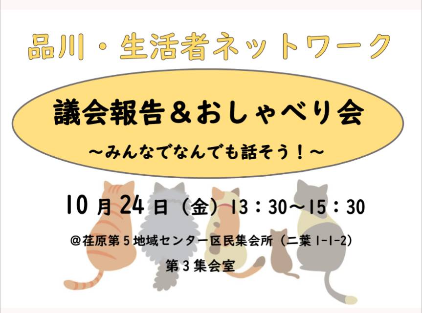 場 所:荏原第五地域センター区民集会所第3集会室(二葉1-1-2 東急大井町線下神明駅徒歩2分)