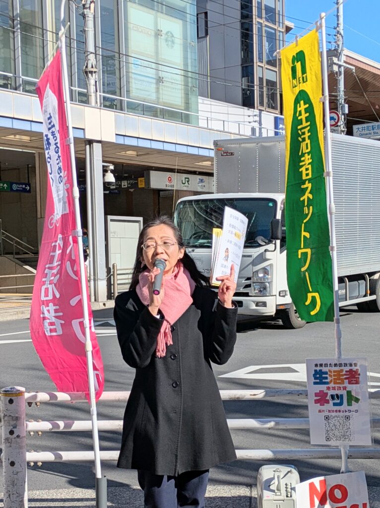 品川・生活者ネットワークは毎月定期的に、品川区内で街宣活動をしています。